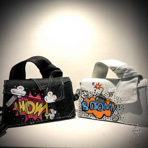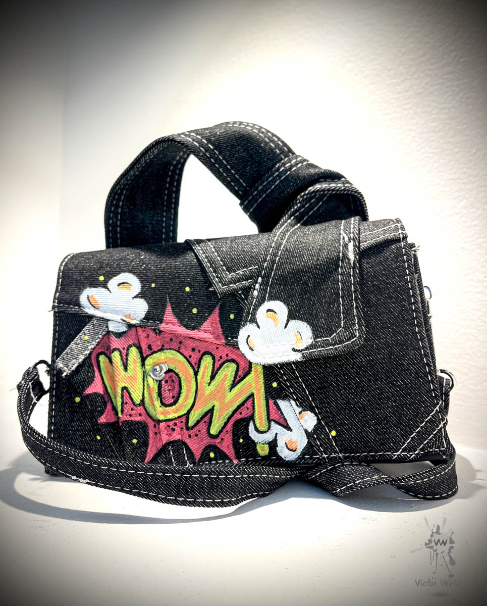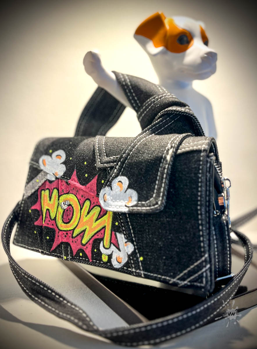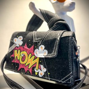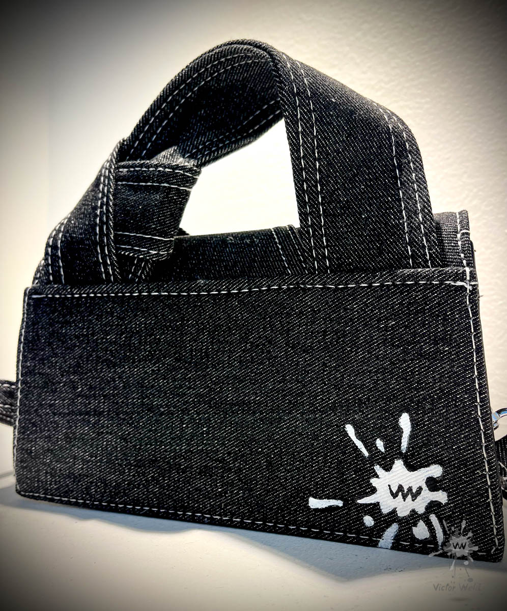 Sac en jean personnalisée, peint à la main pour un look unique.