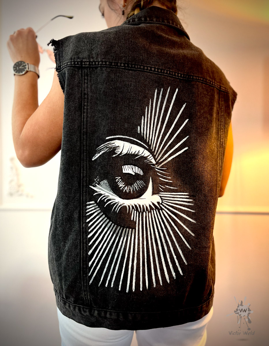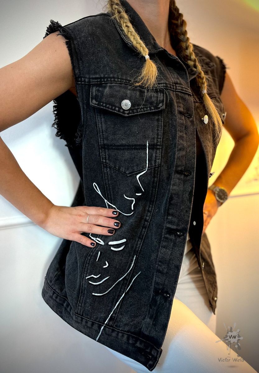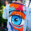 Veste en jean personnalisée, peinte à la main pour un look unique.