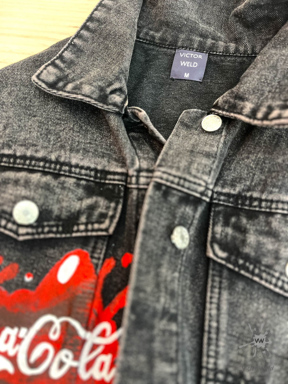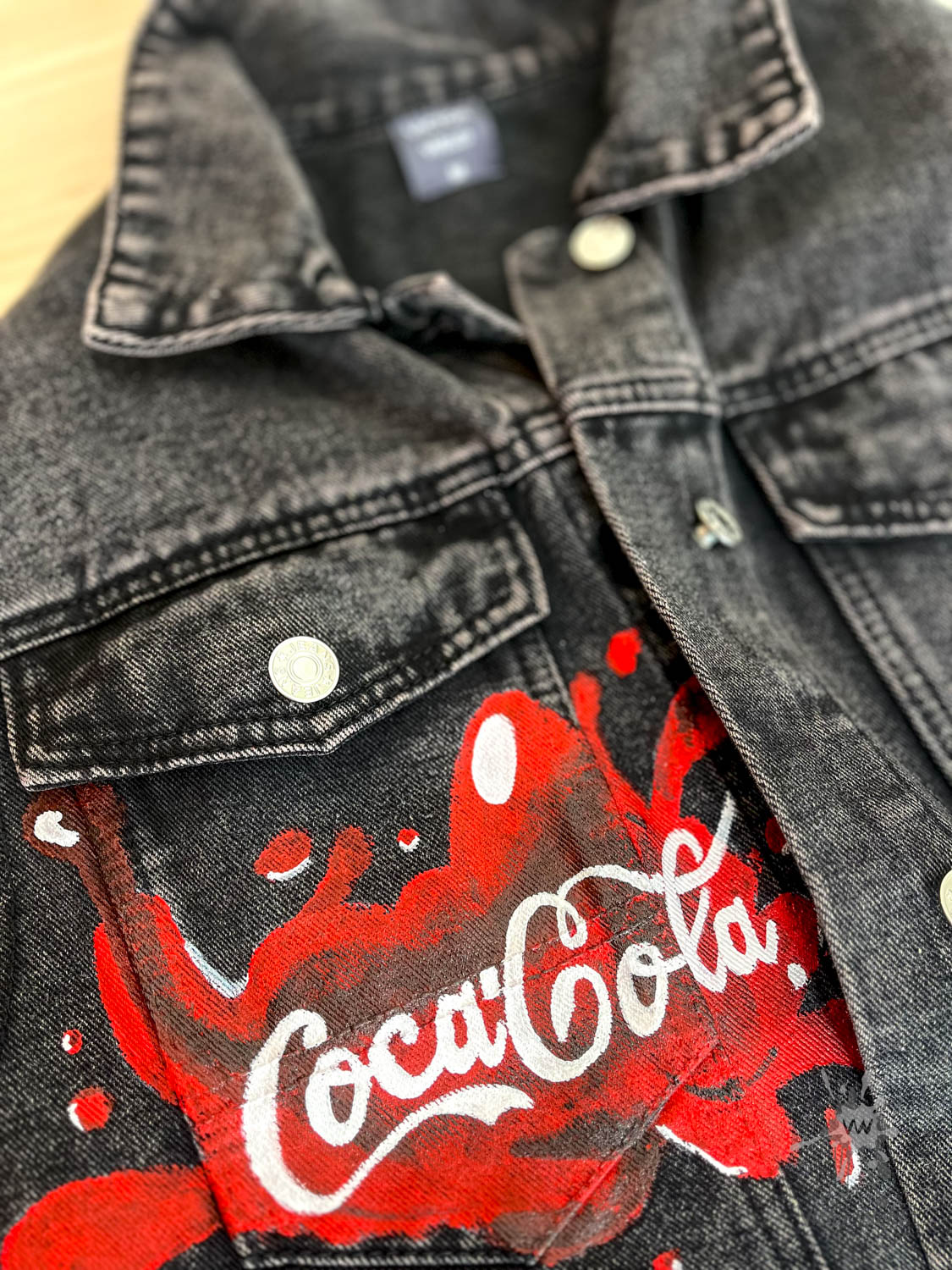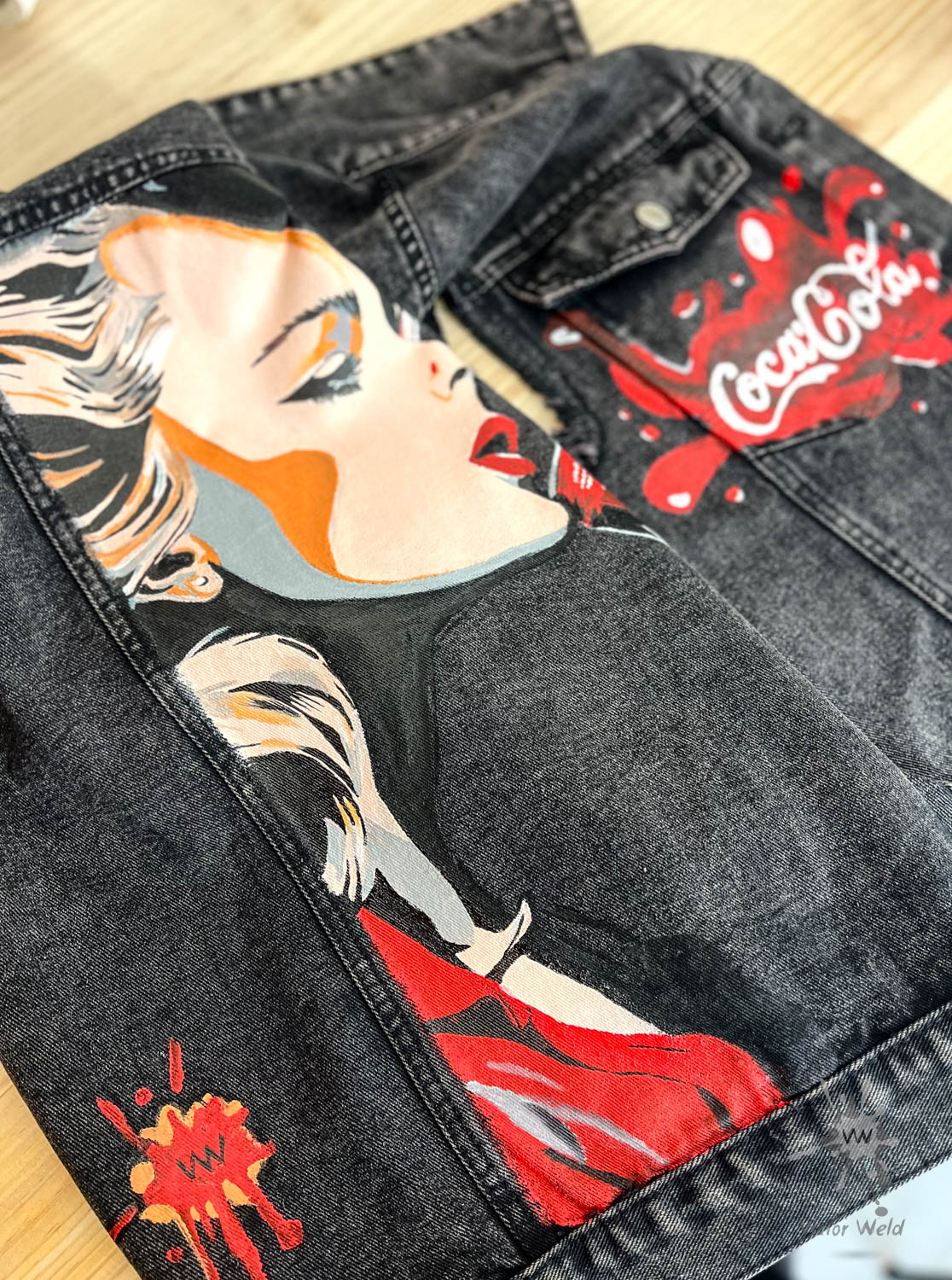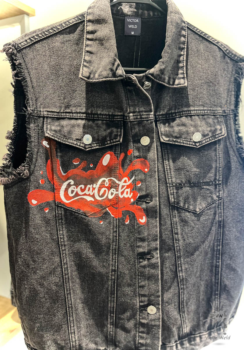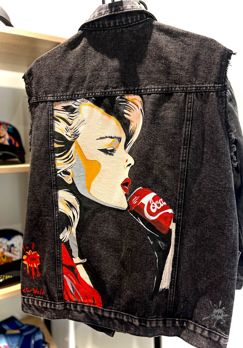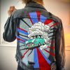 Veste en jean personnalisée, peinte à la main pour un look unique.