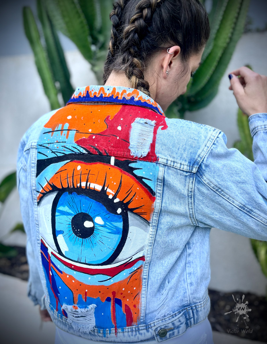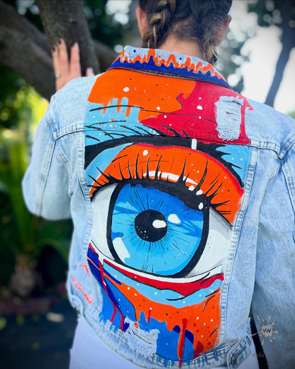 Une nouvelle création vibrante issue de l’univers Victor Weld, mêlant art, mode et émotion. Cette veste en jean bleue, conçue pour les femmes et taillée en S, est un tableau vivant, un manifeste artistique à porter.