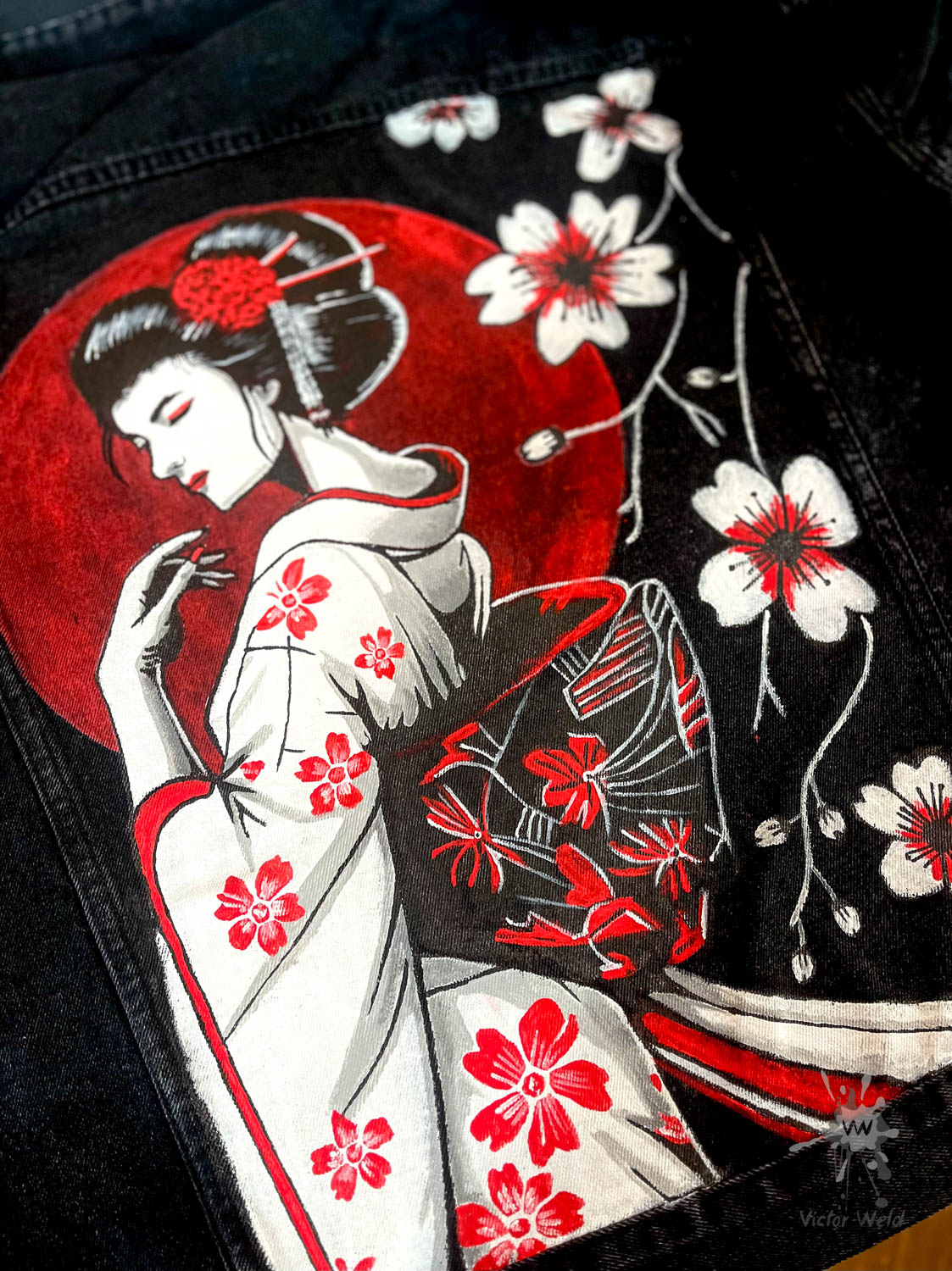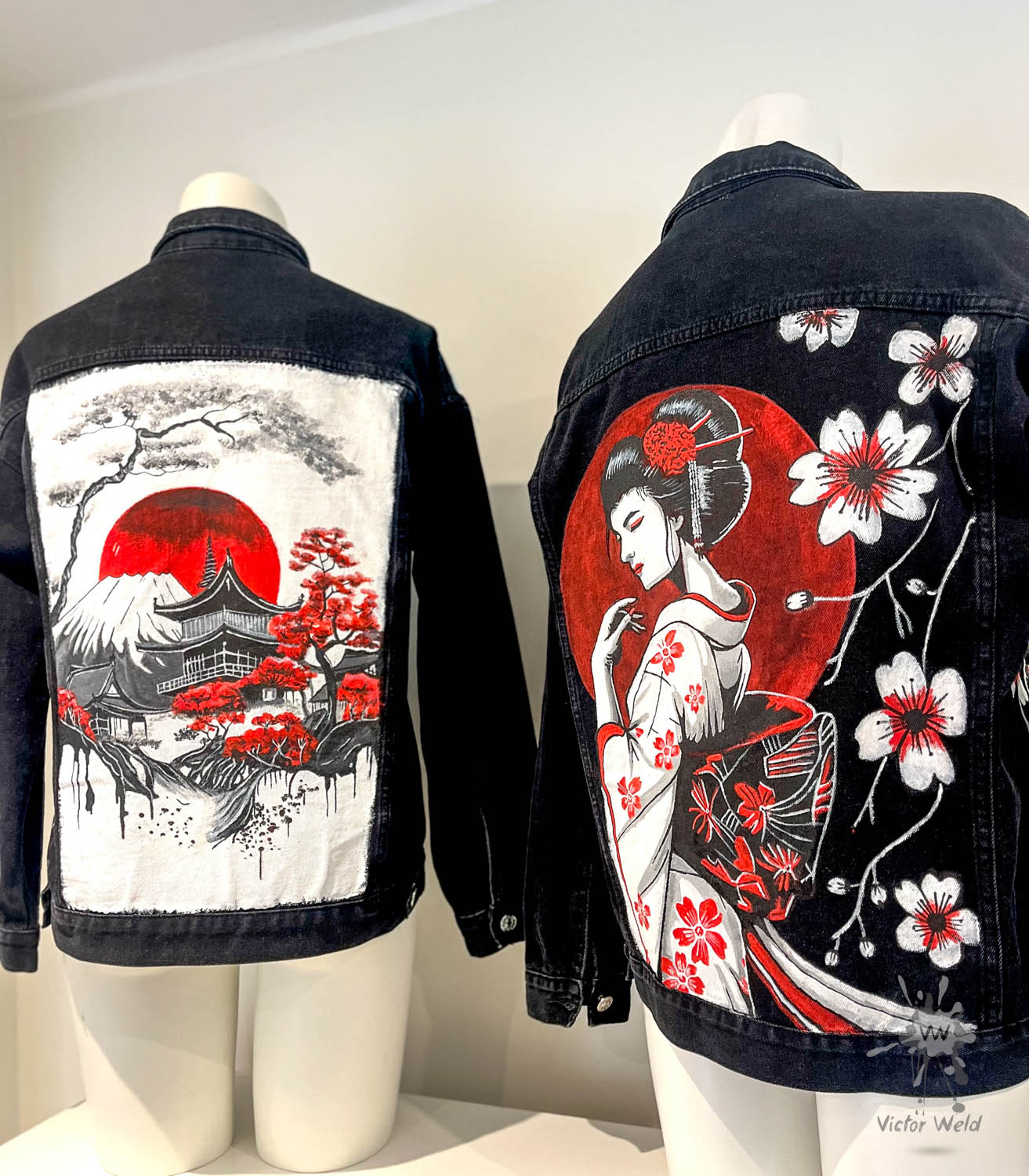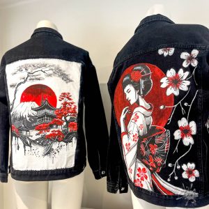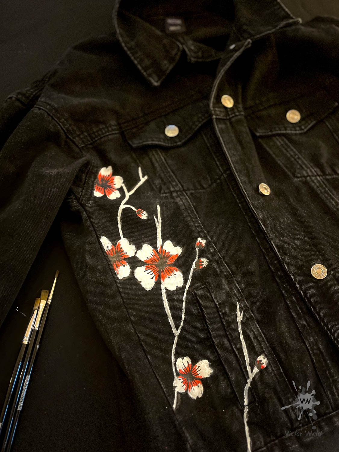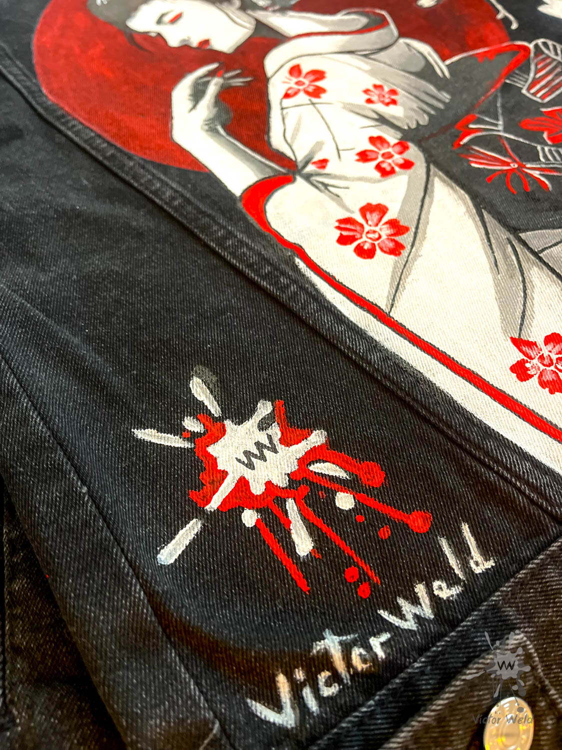DĂ©couvrez l’élĂ©gance et l’originalitĂ© avec cette veste en jean noire peinte Ă  la main, signĂ©e par l’artiste Victor Weld. Ce modèle, numĂ©rotĂ© N°001, fait partie d’une sĂ©rie ultra exclusive japonaise, une Ă©dition limitĂ©e qui incarne Ă  la perfection l’art et la culture nippone.