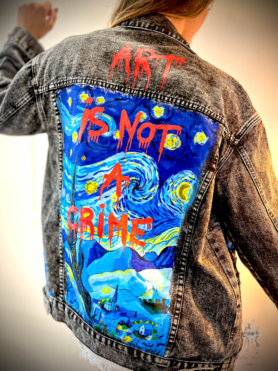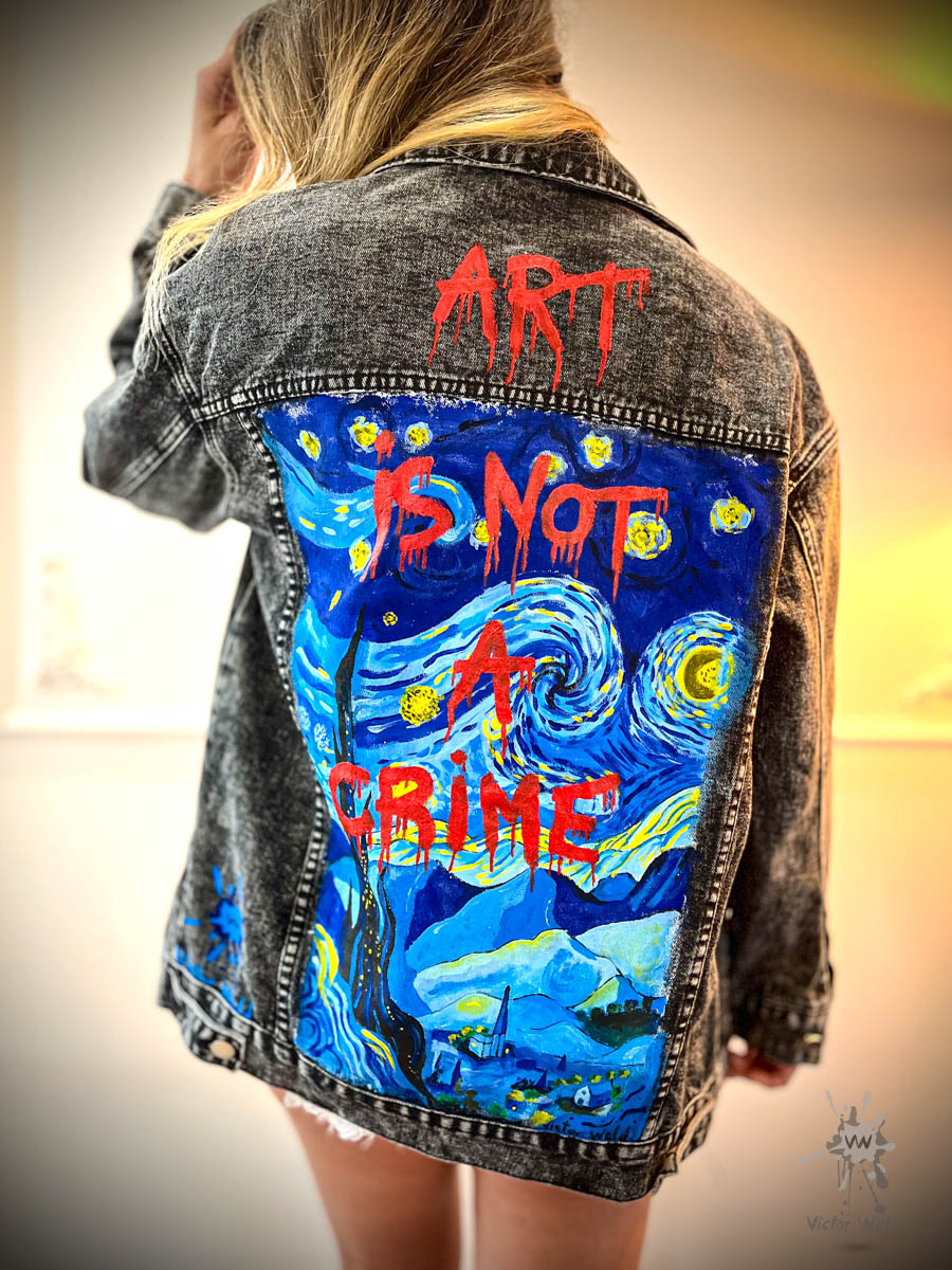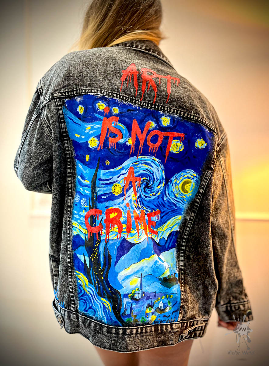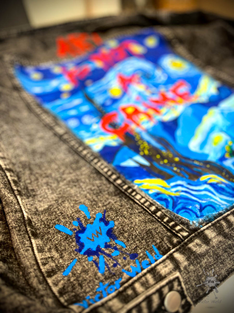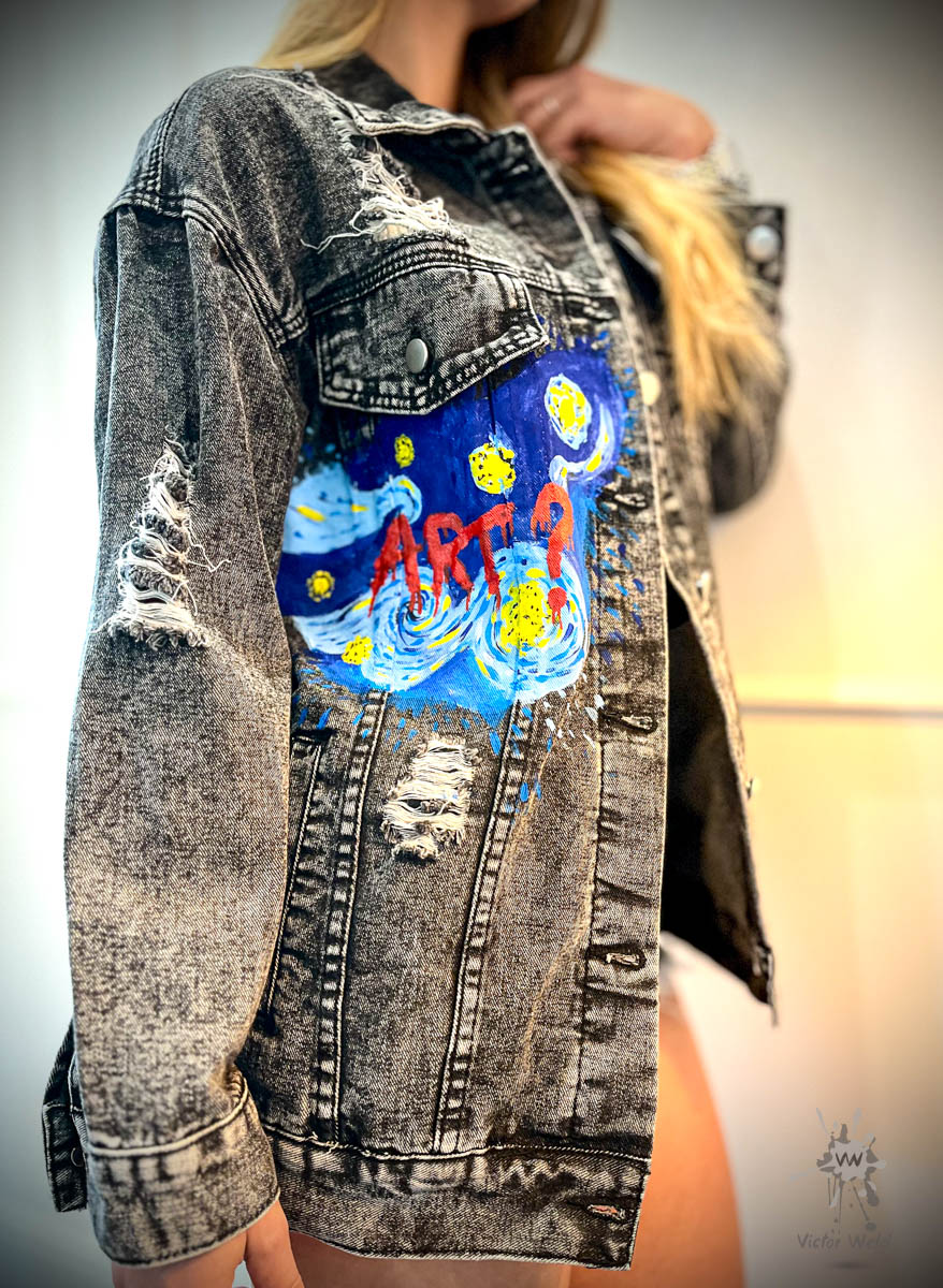 Veste en jean personnalisée, peinte à la main pour un look unique.