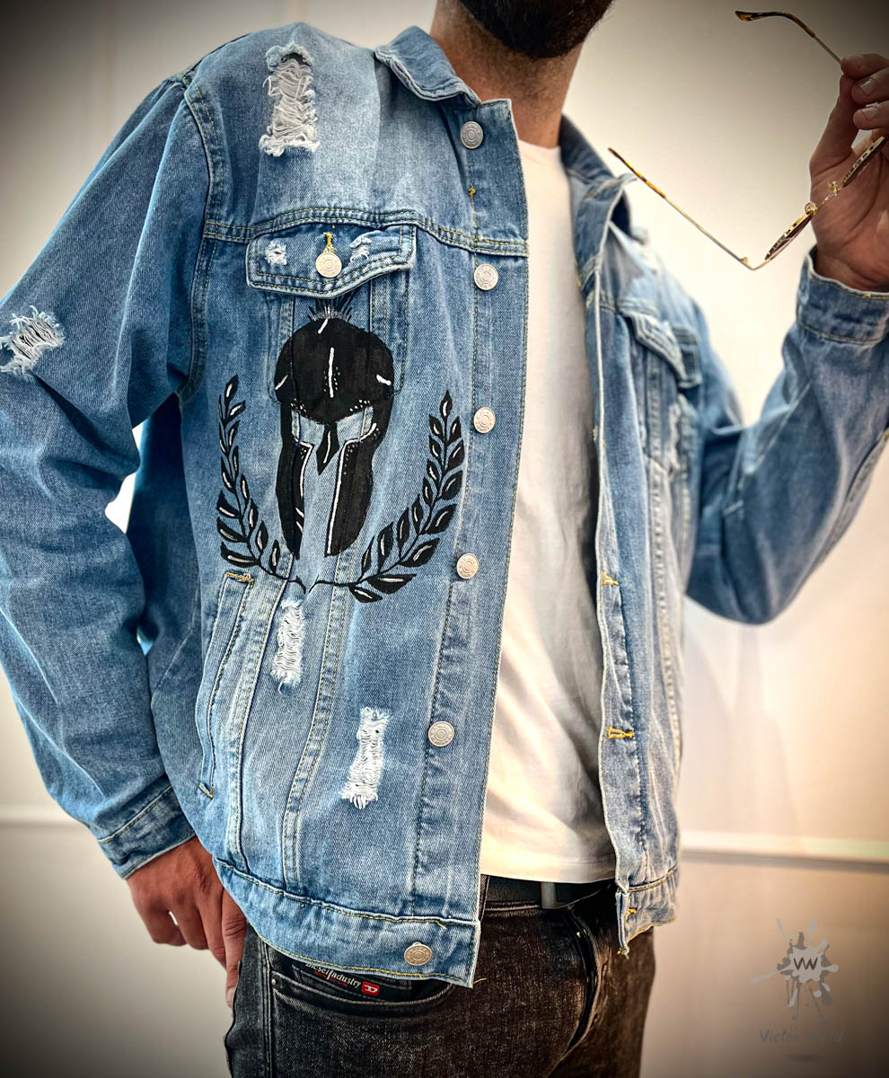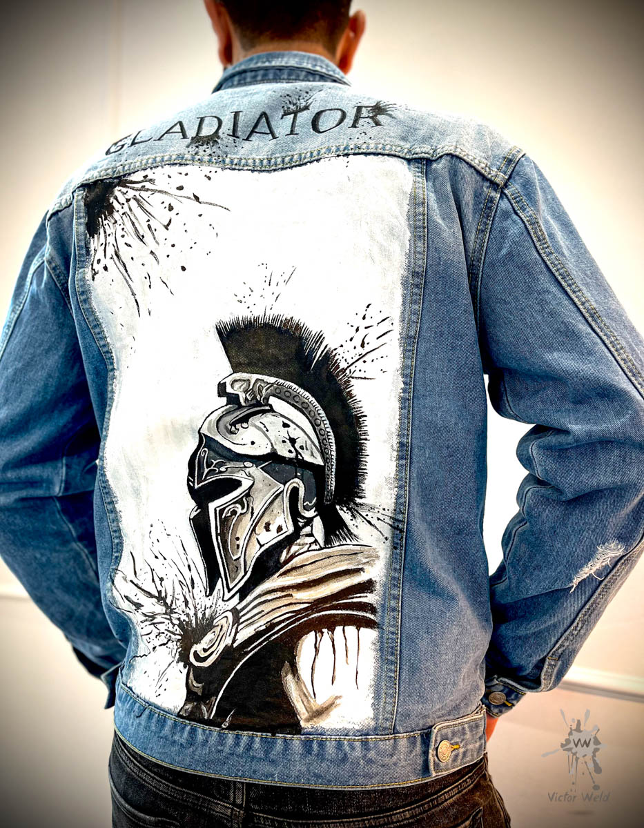 Veste en Jean Peinte à la Main – Å’uvre Unique de Victor Weld – Gladiator N°28