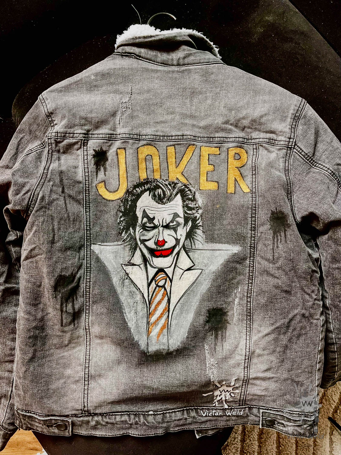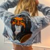 Veste en jean personnalisée, peinte à la main pour un look unique.